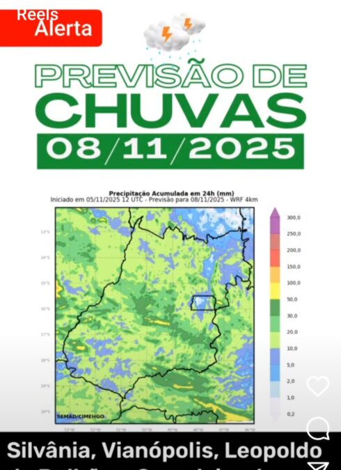 O Instituto Nacional de Meteorologia (INMET) emitiu, neste sábado, 08/11, um alerta laranja de perigo para chuvas intensas em várias cidades da região da Estrada de Ferro, incluindo Silvânia, Leopoldo de Bulhões, Vianópolis, Orizona e municípios vizinhos.