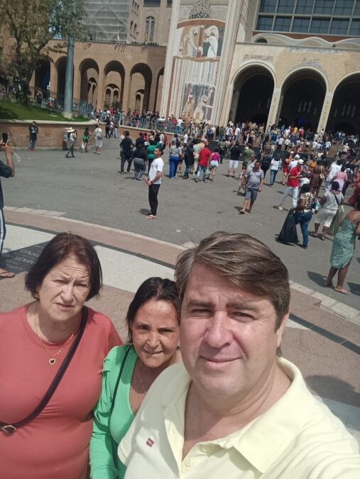 Dentre os vianopolinos que visitam Aparecida do Norte na data de hoje, 12/10, estão o empresário vianopolino Eudes Antônio de Souza, sua mãe, Helena de Fátima Pereira de Souza, e sua esposa, Simone Basil de Souza.