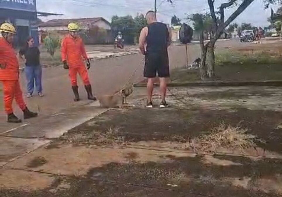 o animal foi contido e capturado pelo militar.