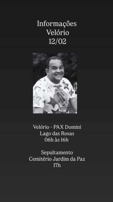 O corpo de Rômulo Palazzo Filho será velado das 6 às 16h de amanhã, 12/02, na Sala de Velórios da Pax Domini no Lago das Rosas em Goiânia e o sepultamento está marcado para às 17h no Cemitério Jardim da Paz na capital do estado.
