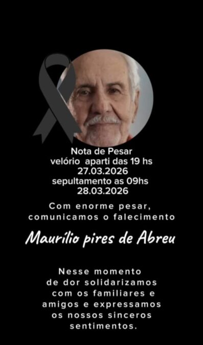 O corpo de Maurílio Pires de Abreu está sendo velado na Sala de Velórios da Funerária Pax Universo, sendo que o sepultamento será realizado às 9h deste sábado, 28/03, no Cemitério Central da Rua Calil Elias Neto.