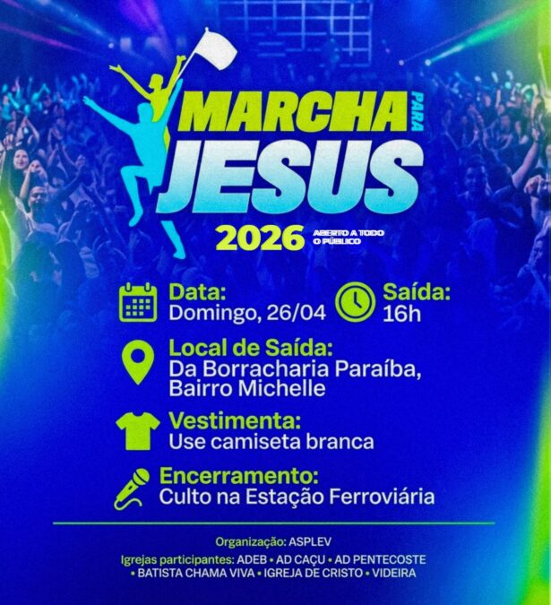A Marcha para Jesus 2026 será, sem dúvida, mais um marco na história religiosa do município, reunindo vozes, orações e louvores em um só propósito: glorificar a Deus e levar uma mensagem de esperança a toda a população.