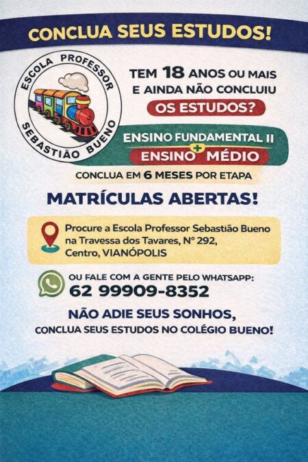 Já se encontram abertas as matrículas do EJA (EDUCAÇÃO DE JOVENS E ADULTOS) no Colégio Bueno de Vianópolis.