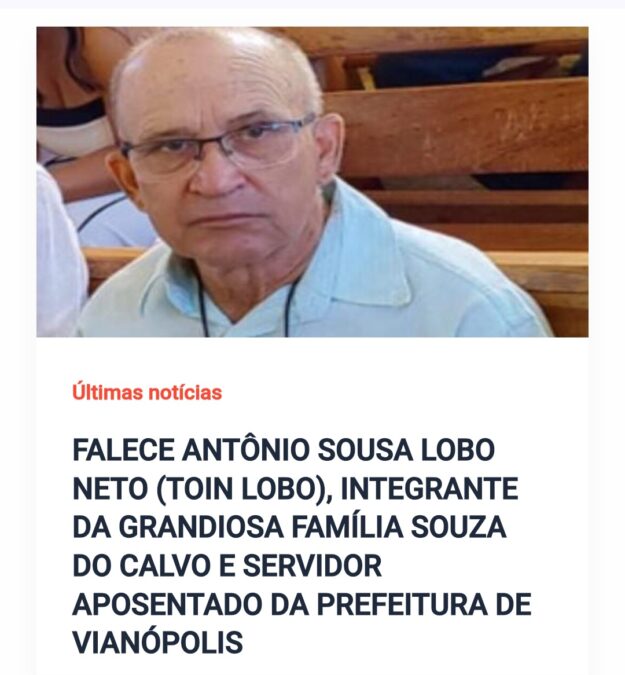 -ANTÔNIO SOUZA LOBO NETO, servidor da Prefeitura de Vianópolis, mais conhecido por Toin Lobo que faleceu em 27 de julho.
