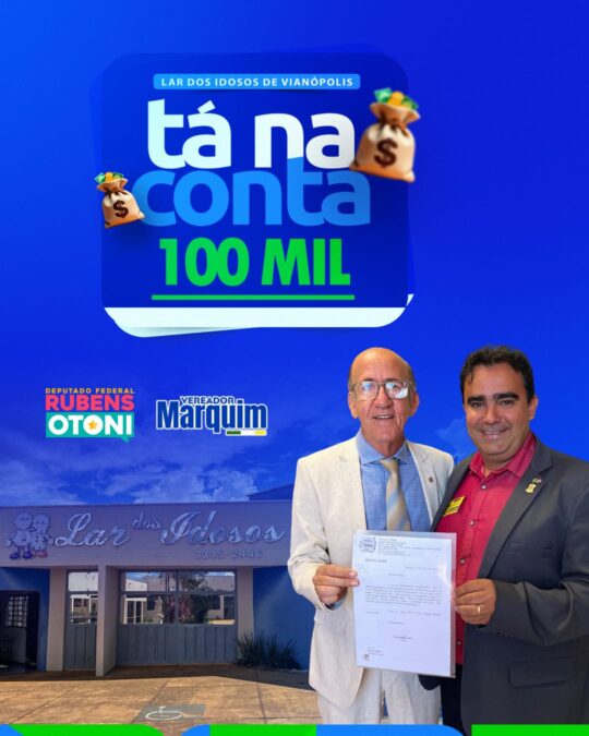 Já o Deputado Federal Rubens Otoni destinou 100 mil reais para o Lar dos Idosos de Vianópolis e 247 mil e 500 reais para a Prefeitura usar no melhoramento da iluminação pública da cidade.